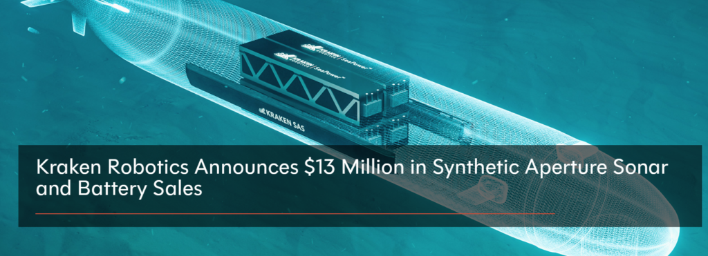 Vor kurzem gab es eine wichtige Nachricht, die das Potenzial von Kraken Robotics unterstreicht: Das Unternehmen meldete Verkäufe im Wert von 13 Millionen US-Dollar für seine hochmoderne Synthetic Aperture Sonar (SAS)-Technologie und Batteriesysteme. ( Link zur Meldung )