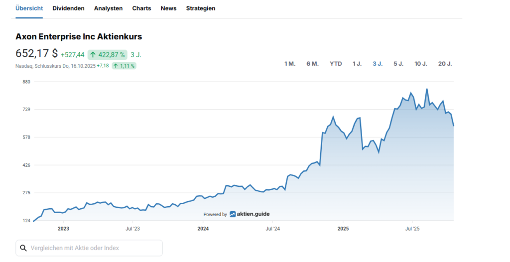 Posted on 17. Oktober 202517. Oktober 2025 LetMoneyWork By LetMoneyWork Keine Kommentare zu Axon: Position strategisch ausgebaut – Chancen und Risiken im Sicherheitsmarkt