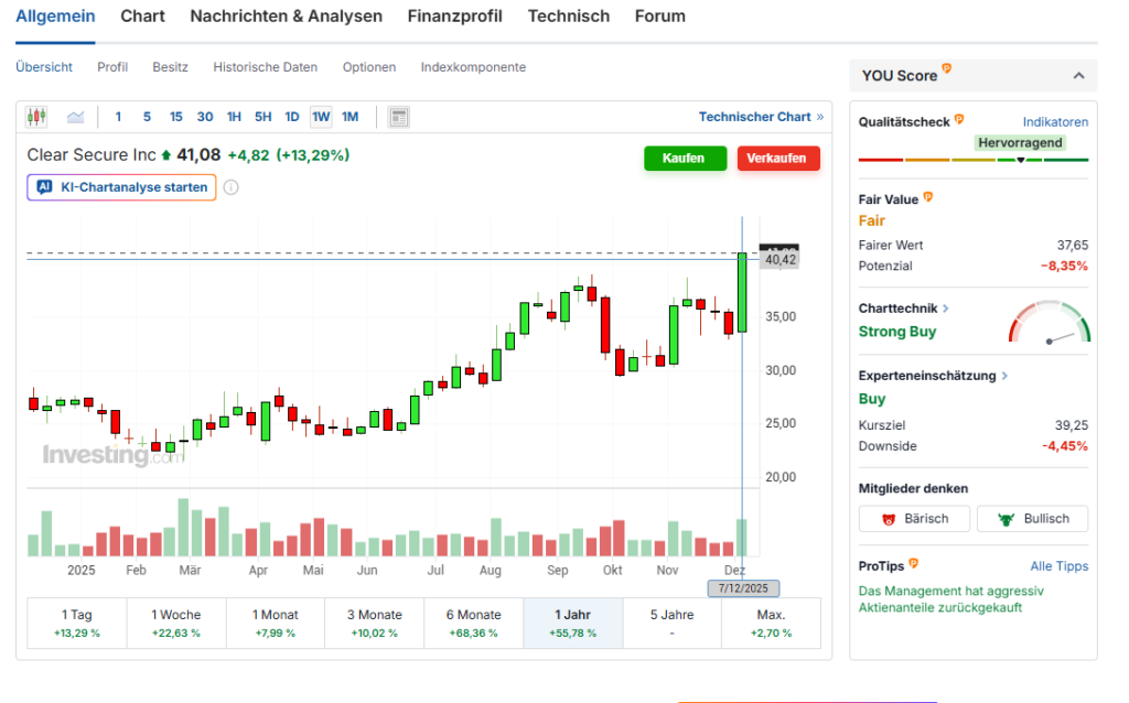 Gleichzeitig habe ich mit Clear Secure eine andere interessante Firma gefunden. Nun stehe ich vor der klassischen aktiven Entscheidung: Mache ich bei Broadcom Kapital locker, um bei Clear Secure einzusteigen?